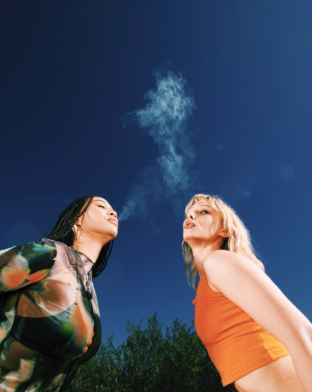 For this piece, I started with the original photography and built a custom typography treatment using the smoke itself, shaping the lettering to feel like it was naturally formed from their breath rather than added afterward. The goal was to turn an ephemeral moment into the headline, letting the title live in the atmosphere of the image while keeping the focus on the subjects. I handled the smoke compositing, letter shaping, and blending so the type feels light, organic, and believable against the sky, balancing readability with realism. The final result turns a simple exhale into a graphic element, creating a playful, surreal cover moment that feels both natural and intentional.